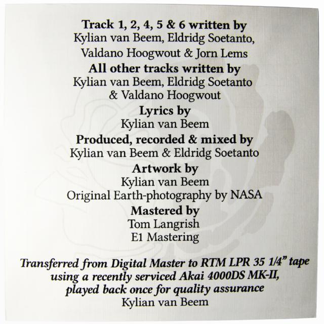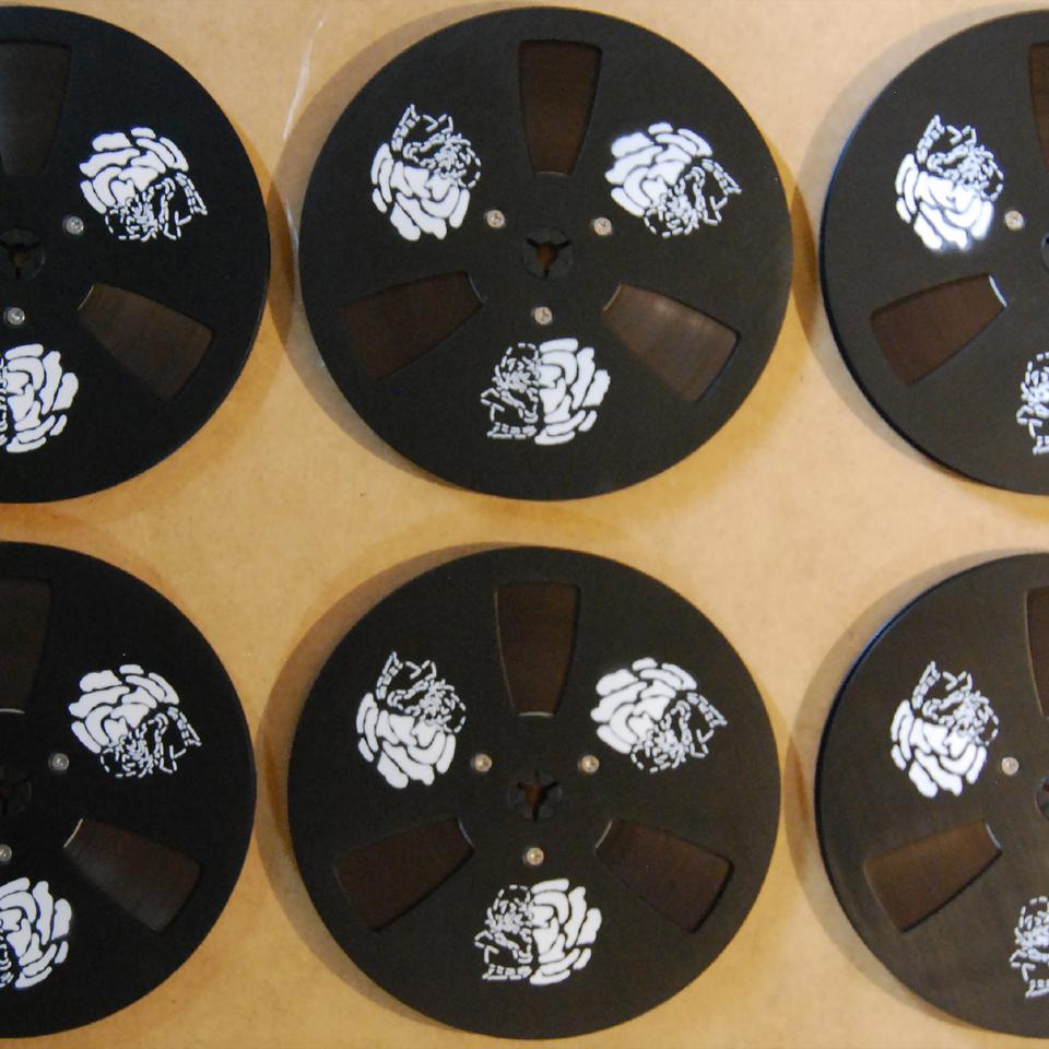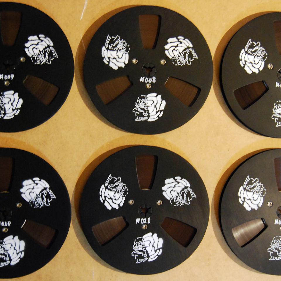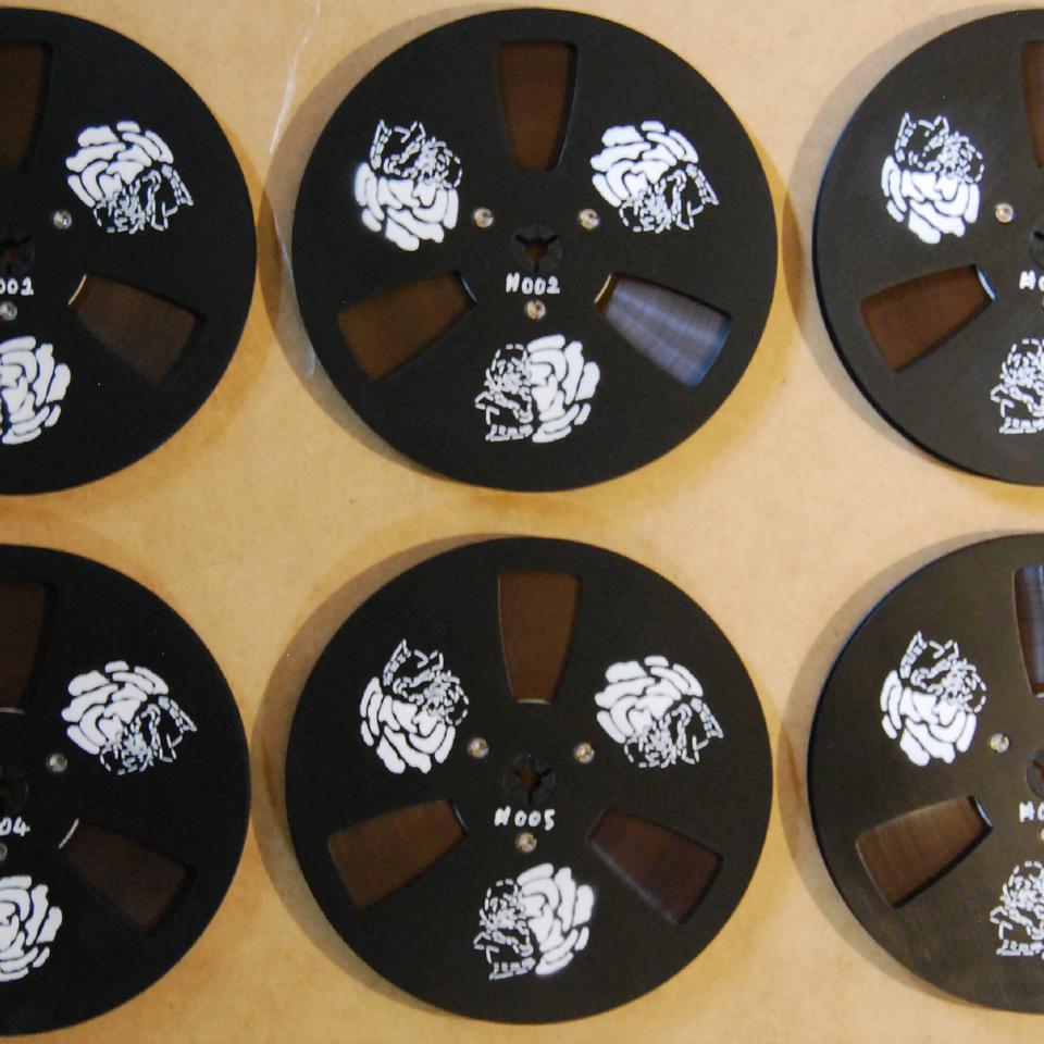 -Limited run of 12 copies -Comes on a 7" (18cm) aluminum reel -Recorded at 7.5 ips (19 cm/s) -Transferred from Digital Master to RTM LPR 35 1/4” tape using a recently serviced Akai 4000DS MK-II -RTM Leader/Splicing Tape used at start & ending of the album -Played back once for quality assurance -Hand-stamped box -Reel spraypainted & varnished by hand -Linen-textured paper insert with credits & hand-written tracklisting included -Hand-numbered on back of the box