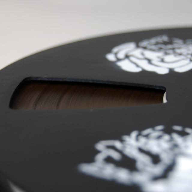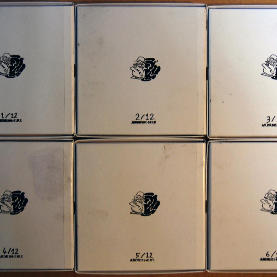 Please take the DIY-nature of this release into account when ordering, as there are inconsistencies between copies as far as the spraypaint/stamp accuracy goes for instance. We've obviously done our utter best to make this a beautiful release, but please do not expect 'factory-results' from a non-factory product. The white boxes also came shipped with some particularly difficult-to-remove stickers on them, so sadly enough some glue residue is still present on the back.