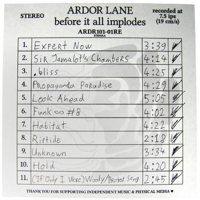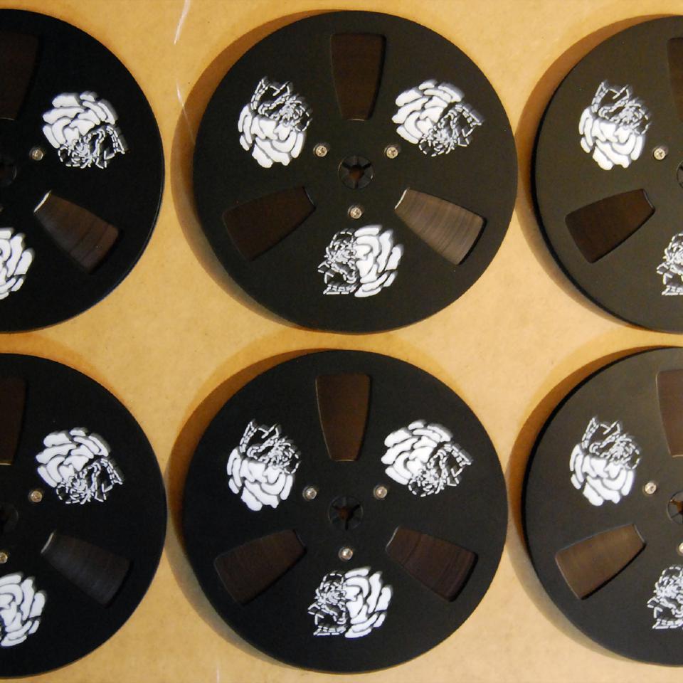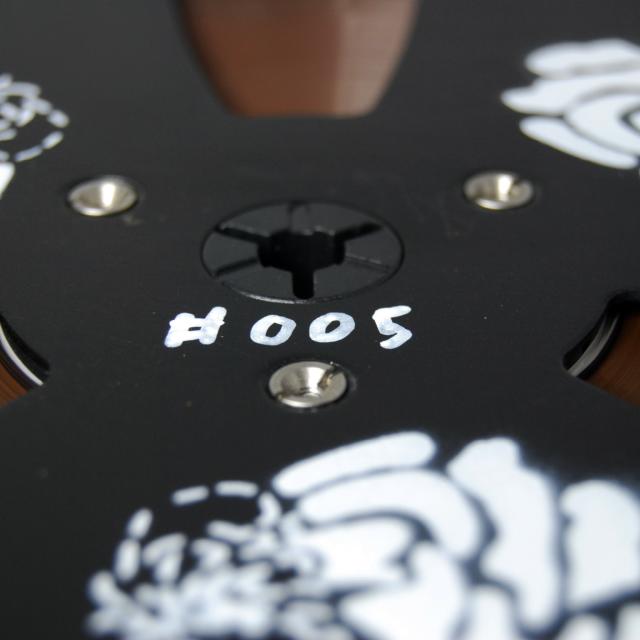 -Limited run of 12 copies -Comes on a 7" (18cm) aluminum reel -Recorded at 7.5 ips (19 cm/s) -Transferred from Digital Master to RTM LPR 35 1/4” tape using a recently serviced Akai 4000DS MK-II -RTM Leader/Splicing Tape used at start & ending of the album -Played back once for quality assurance -Hand-stamped box -Reel spraypainted & varnished by hand -Linen-textured paper insert with credits & hand-written tracklisting included -Hand-numbered on back of the box
