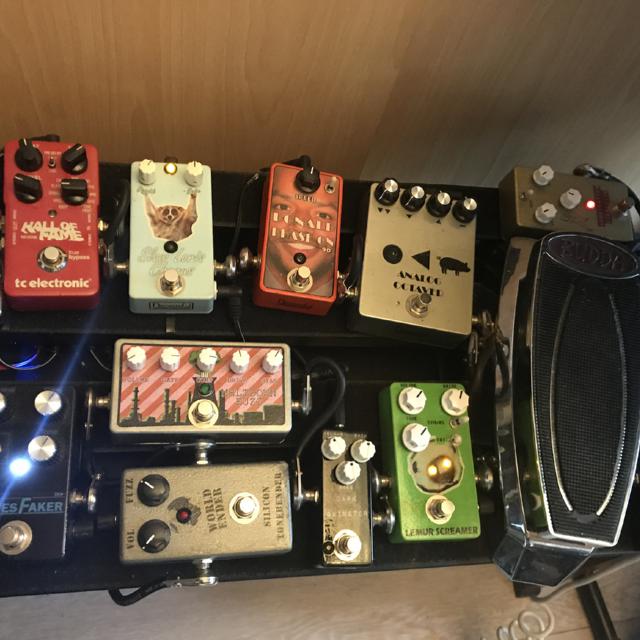 For most distortion-tones a Madbean 8Ball (Marshall Bluesbreaker clone) was used, for most fuzz-tones either a Madbean Tonebender or Madbean Rabbit Hole (Ram's Head Big Muff clone). The Madbean Kingslayer (Klon Centaur clone) was also engaged for most distorted/overdriven tracks.
